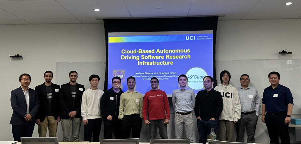 One of the key events this year was a local workshop hosted at UCI in March 2025. The workshop brought together researchers from multiple institutions with the goal of eliciting requirements for a shared, cloud-based research infrastructure to support the development and testing of autonomous driving systems. Rather than focusing on a particular software stack, the workshop centered on identifying technical, logistical, and collaborative needs that such an infrastructure must address. Participants shared perspectives on scenario generation, simulation at scale, data management, and tool interoperability—laying the groundwork for a future platform that could support reproducible, cross-institutional research in autonomous driving systems.