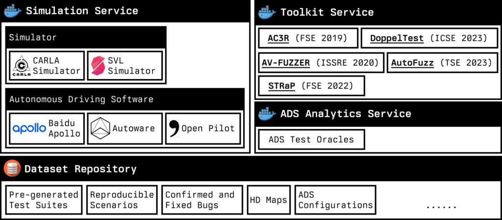 With these community needs in mind, Yuqi is now leading the design and development of a Cloud-based Autonomous Driving Systems Research Infrastructure (CADRI). Building on insights from both the UCI-hosted workshop and the SE4ADS forum, this effort aims to create a scalable, interoperable platform that supports reproducible experimentation. A key advantage of the cloud-based approach is its ability to significantly reduce upfront costs, allowing researchers to perform large-scale testing and development without substantial investment in specialized hardware. This initiative builds on Yuqi’s earlier work in scenario-based testing, including DoppelTest [1] and scenoRITA [2], two frameworks for generating scenario-based tests. He also maintains a key dependency for the SVL simulator, helping ensure that the simulation tool remains accessible to the research community. In parallel, Xiang has been working on migrating tools originally developed for other ADS platforms onto Autoware, thereby broadening tool compatibility and reinforcing Autoware’s role as an open-source foundation for reproducible research.