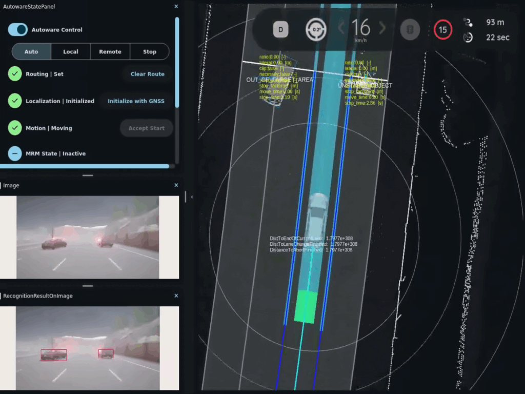 While Josh approaches autonomous driving from a software engineering perspective, focusing on faults that affect system reliability and correctness, Alfred brings a security lens to the field, concentrating on vulnerabilities in autonomous vehicles. Specifically, Alfred’s team focused on evaluating the robustness of autonomous driving systems by leveraging component-level vulnerabilities using methods such as adversarial scenarios, patches, and objects. Their efforts have contributed to a Platform for Auto-driving Safety and Security (PASS) [6], a modular and extensible simulation-based evaluation framework specifically for evaluating system-level effectiveness of existing attacks or defenses across different autonomous driving models. Building on top of PASS, Chi has been spending his recent efforts on designing and developing an adversarial scenario generation framework for Autoware using the CARLA simulation environment.