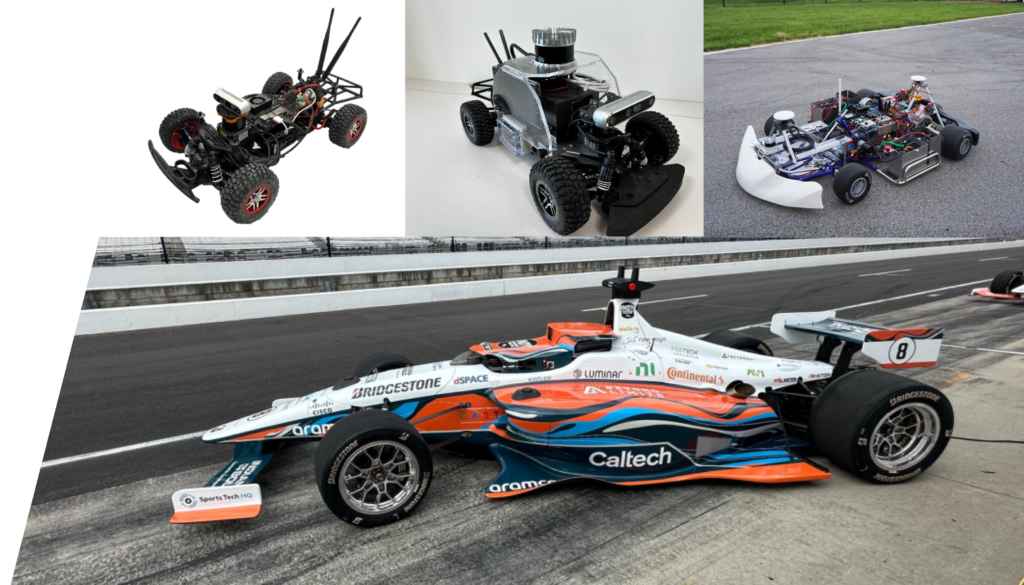 Many form factors are involved in autonomous racing, each providing unique learning opportunities. It can start with 1:10th-scale robots1, advance to versions equipped with upgraded sensors like 3D LiDARs, and move up to autonomous go-karts. The pinnacle of this progression is the full-scale Indy cars2 as it stands today, racing autonomously at speeds of over 270 km/h, showcasing just how far the technology can be pushed in high-stakes environments.