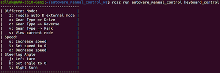 $ source install/local_setup.bash $ ros2 run autoware_manual_control keyboard_control