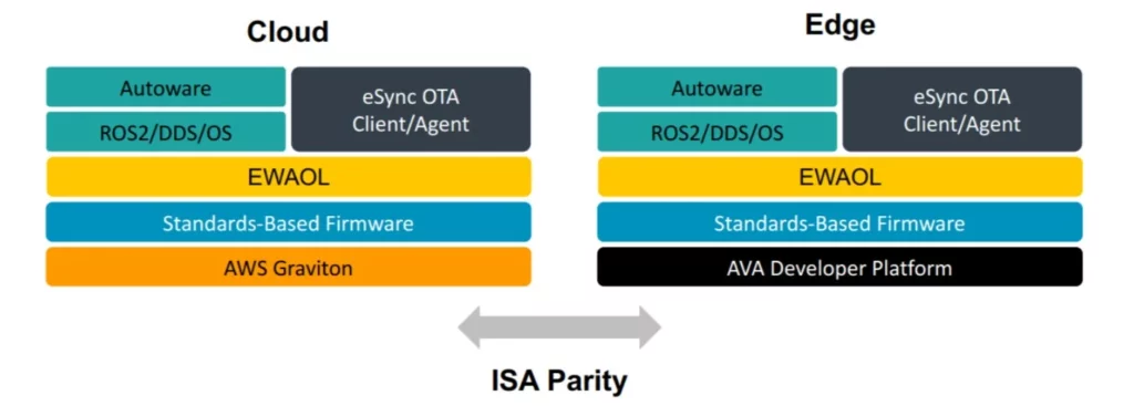 As of today, we have made significant progress in Open AD thanks to the collaborative efforts of our alliance partners. We have implemented Autoware in a container on top of EWAOL and integrated it with the e-Sync OTA agent as an additional application in the framework. We have also successfully demonstrated that the framework performs at ISA-level parity when running in the cloud on an AWS Graviton instance and at the edge on an AVA developer platform.