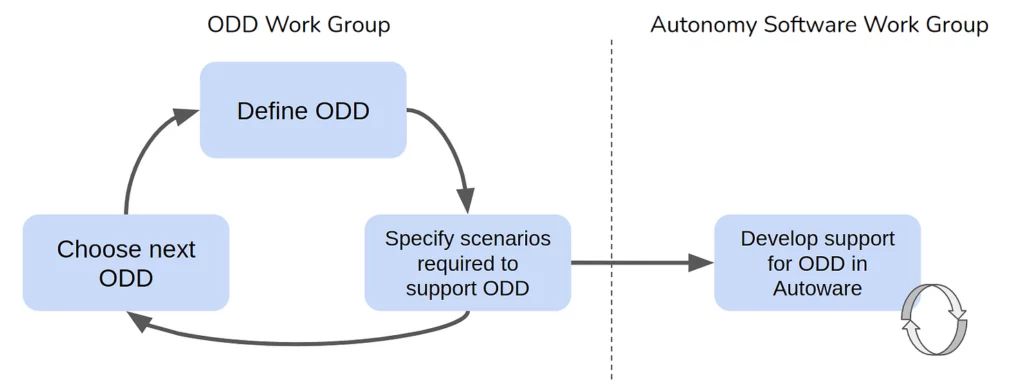 The video also demonstrates the new simulation pipeline used to test various scenarios against our autonomous driving stack. During the Cargo Delivery project, we have introduced the operational-design-domain-driven development process. During the previous AVP project, we learned the importance of setting clear goals for development and decided to form the Operational Design Domain(ODD) Working Group in the TSC in June 2020. The working group first defines the ODD and goal use-cases of the projects as machine-readable scenarios that can be used for simulation tests.
