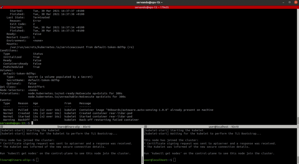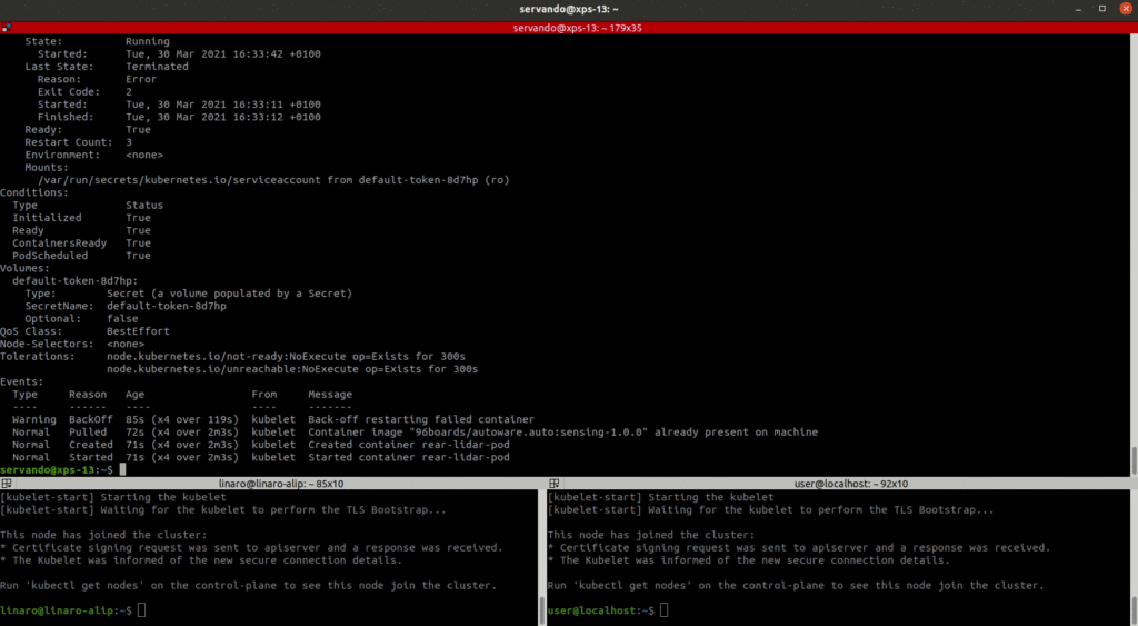 The above process works really nice if the new image has been built appropriately, but, what happens if the update image contains a bug, or if for some reason we wanted to roll back the update? Well, let’s try using the sensing-1.0.0_bad image which leads to an Error state when k8s tries to start it.