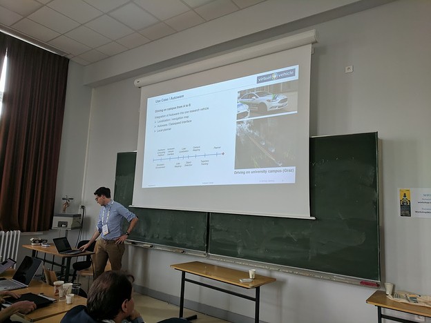 Researchers from TU Graz showed how they use Autoware to drive autonomously around their university campus using a Ford vehicle.
